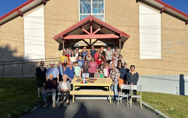 Our council decided to commission our local artist (and parishioner) Tracy Oates to complete work for the launching of a table for our church's 100 Tables project in commemoration of our 100th Anniversary. Rev. Sellars supplied the logo, and theme, “I’m Gonna Eat at the Welcome Table.” Special Thank you to Official Board Chairperson Colin Clarke, and parishioner Cyril Whalen, for supplying transportation. This table will be part of a wider fall initiative to re-engage our congregation, as well as welcome newcomers, seekers, and visitors to be a part of a community of faith that wants to offer hope, peace, and belonging through a transforming relationship with Jesus Christ. There will be a Welcome Back to Church Sunday on September 21st at 11 am, followed by a Family BBQ, and a Harvest Supper later in the season. The table was launched on Wednesday, September 10th. Some 45 people attended, representing a cross section of our congregation in all her diversity. People were excited to be a part of this event, and look forward to our congregation continuing to draw the circle wide, and to be the welcoming and affirming church that our Lord wants. We see it also as an opportunity to welcome sister congregations to become a part of wider centralized church over time, as was our experience as a national church in 1925.