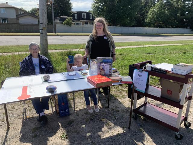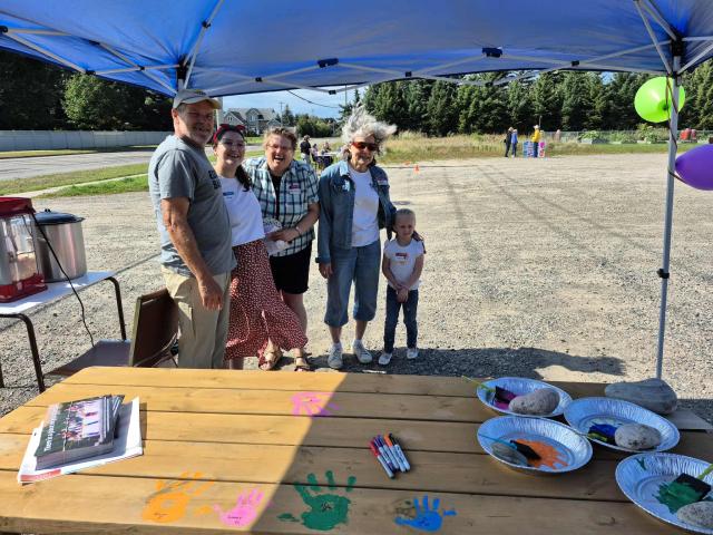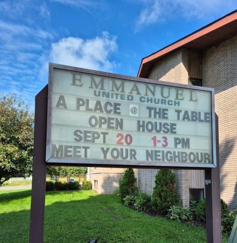 On Saturday September 20th, Emmanuel United Church’s Open House brought together members of the congregation and a few from the wider community for an afternoon of engagement and connection. Outside the church, participants contributed painted handprints to the new accessible picnic table as part of the 100 Tables initiative. Volunteers provided information, popcorn and chocolate, and hand-washing stations to support the activity. Guests also enjoyed lemonade while exploring the community garden and learning about opportunities to get involved. The Affirming Team hosted a welcoming station with face painting and information about their work, while guided art tours introduced visitors to the stained glass windows and art pieces throughout the building. Other displays highlighted the Mission and Service team, the Children’s ministry, the Chemo Cap and Prayer Shawl ministries, and the work of the St. Vincent Volunteers, including their community pasta dinners. The event created opportunities for conversation, learning, and fellowship. Our new and colourful picnic table will be stationed under a tree in the courtyard, where it can be used as a place to congregate after the service!