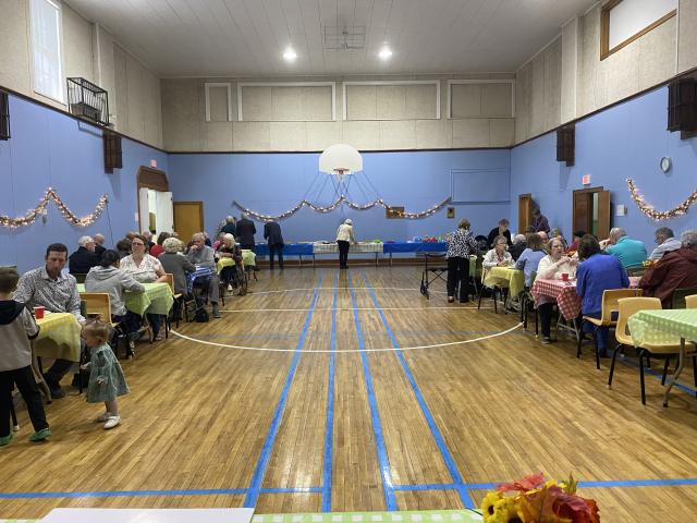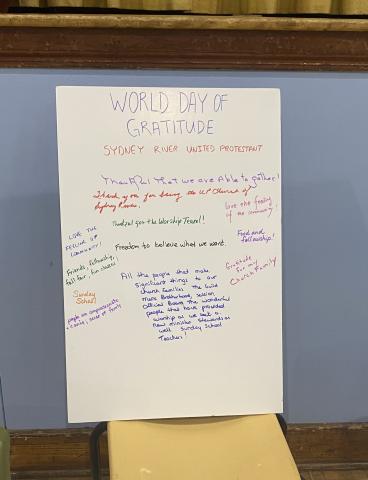 We held a Rally Sunday BBQ after church on September 21 to welcome members back after the summer holidays (and we called members who hadn't been to church in a while to extend an invitation). Everyone enjoyed hamburgers, hotdogs, and ice cream downstairs in the church hall. It was also the day of Sunday School registration. Our table was set up with our new poster that says "welcome" in multiple languages. We also had the 100th anniversary postcards, some information about our church groups, and a poster board where people could write something they were grateful for about our church community, since it was also World Day of Gratitude. It was a very successful event!